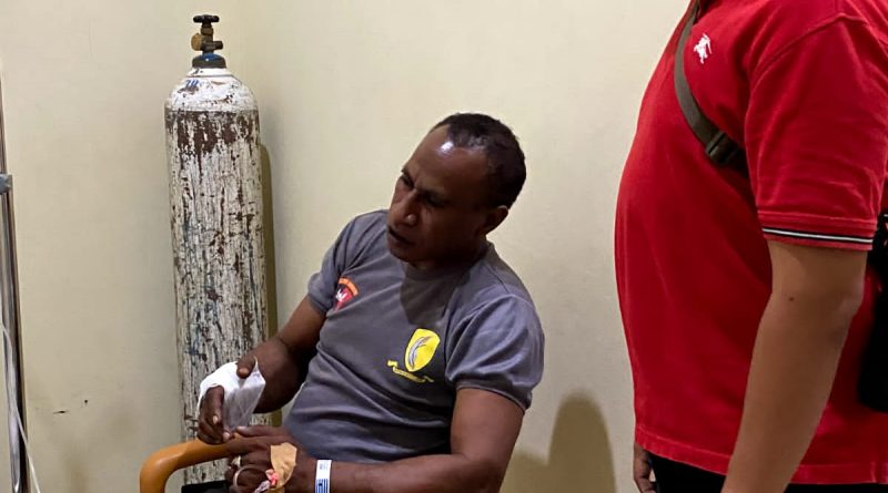 Kasat Polair Polresta Jayapura Kota Menjadi Korban Pelemparan Batu Oleh Masa Pengunjuk Rasa Penolakan DOB di Kota Jayapura