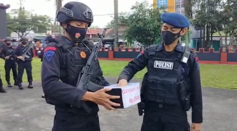 Paser – Polres Paser Polsek Batu Engau menggelar pembagian sembako sebagai bentuk kepedulian dan perhatian Polri kepada masyarakat yang terdampak