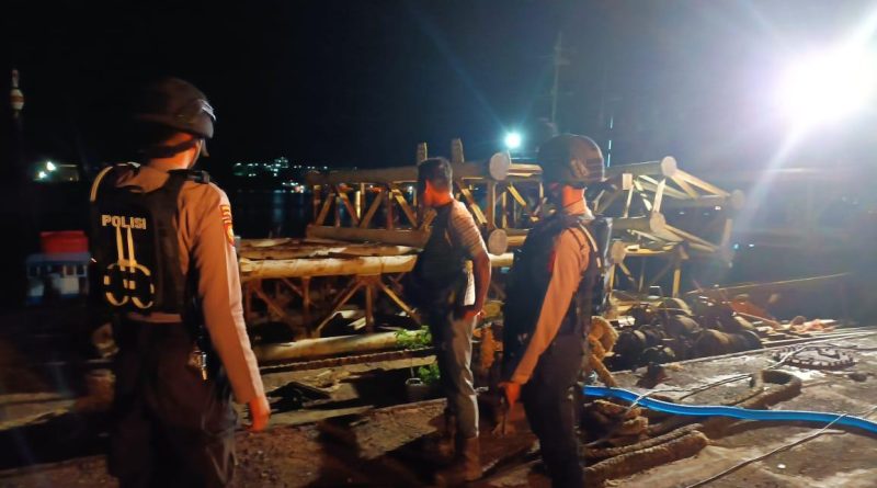 Tribratanewspoldakaltim.com, PPU – Personel Ditsamapta Polda Kaltim laksanakan patroli dan pengamanan di sekitar kawasan pos pam dermaga dan bangunan jalan