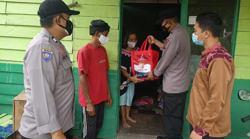 Paser – Personel Sat Lantas Polres Paser membagikan bantuan sembako kepada masyarakat yang terdampak PPKM level 4, Senin (23/08/2021). Kegiatan